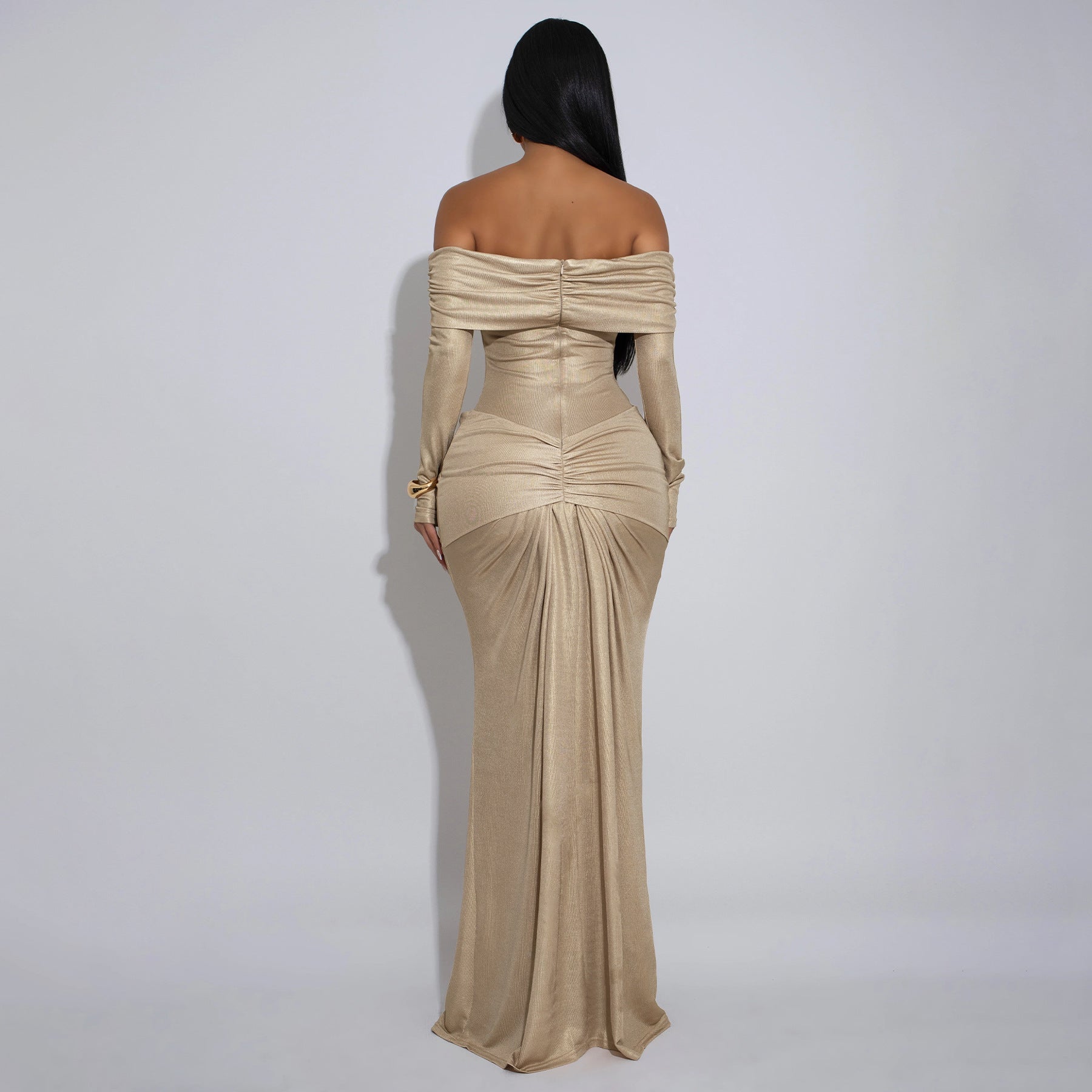 MYF (S-2XL) 10929 off-the-shoulder gown long sleeve glossy dress