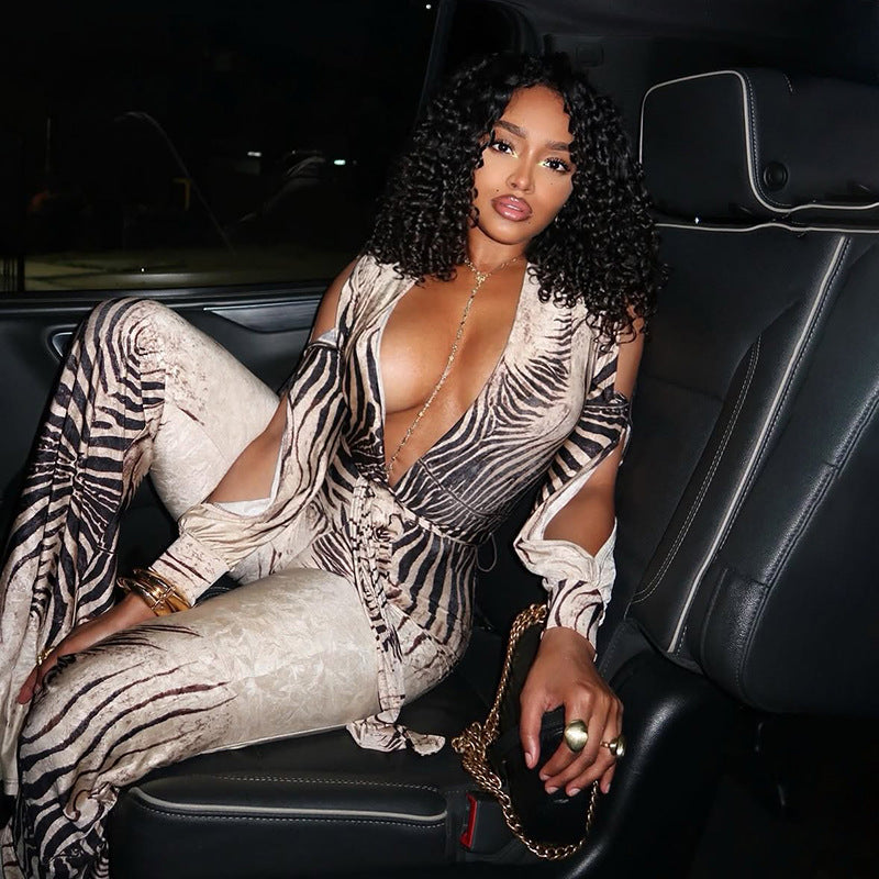 SXR autumn and winter deep V off-shoulder top high waist bootcut pants jumpsuit