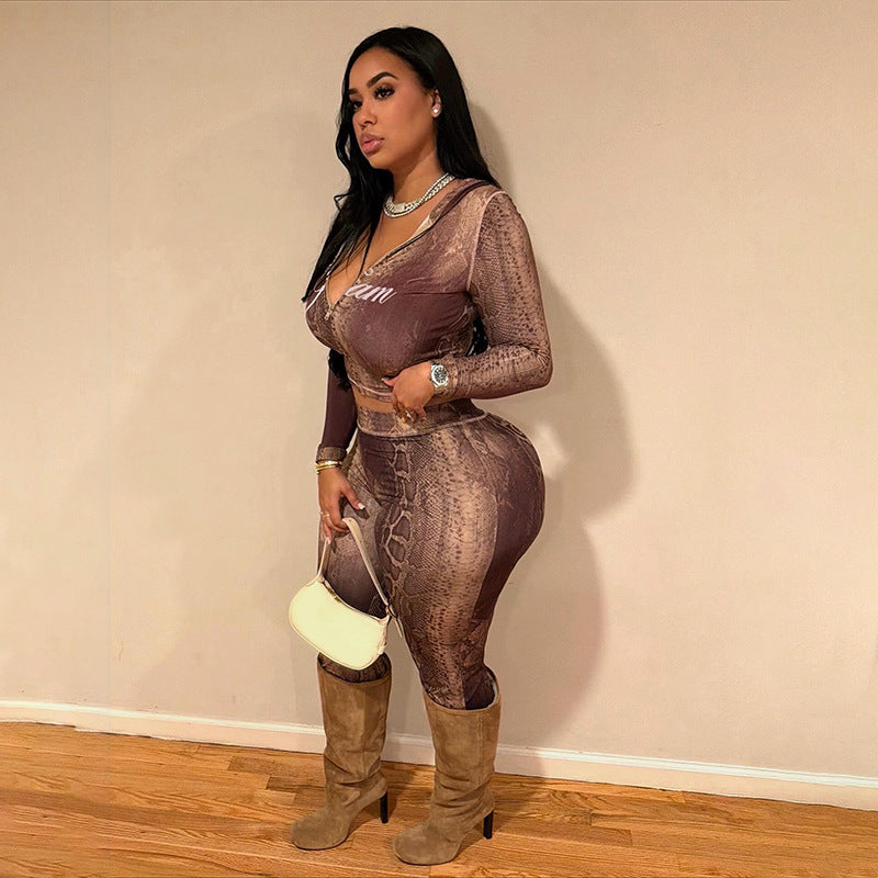 SXR autumn and winter feel cardigan top high waist tight printed trousers suit