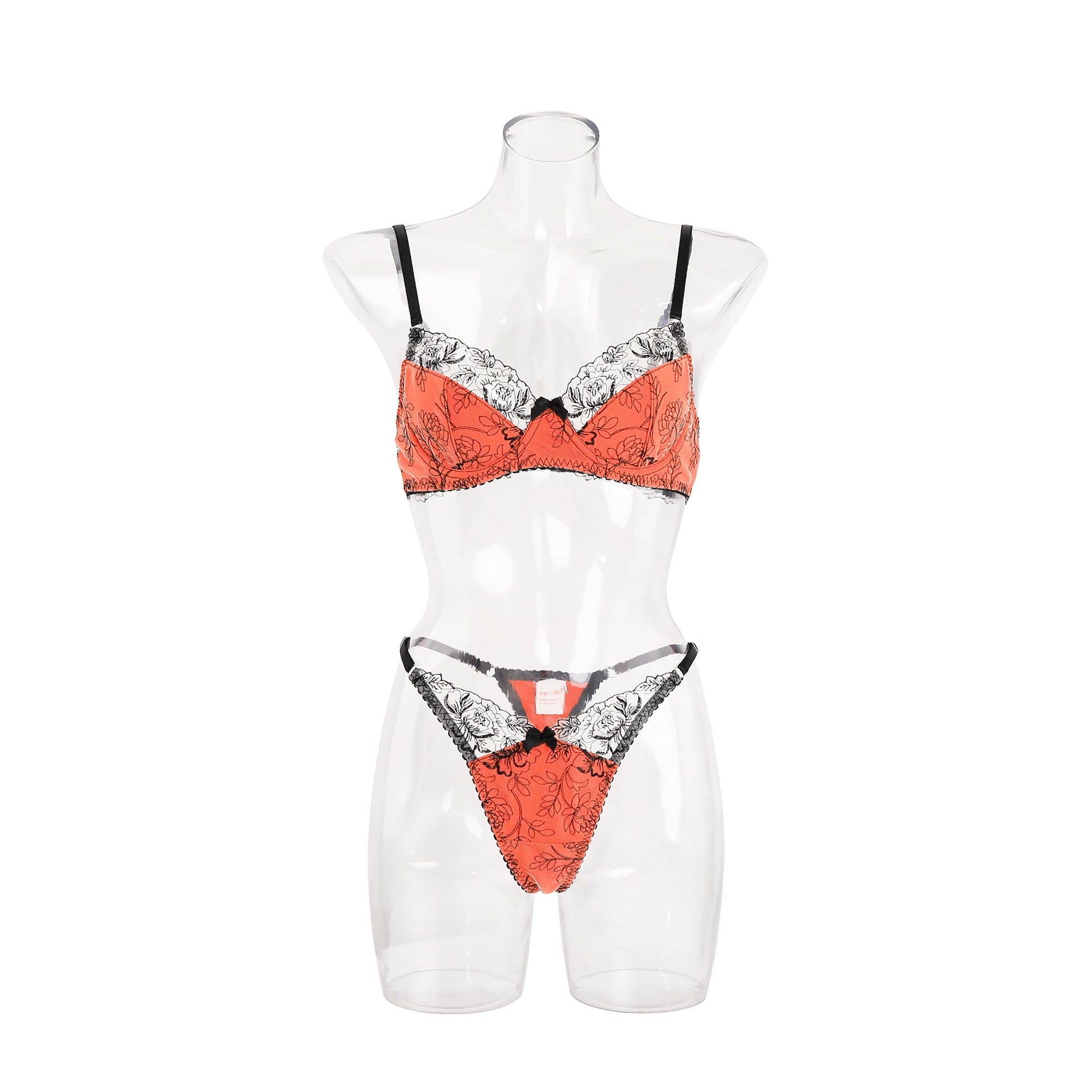 Ultra-thin underwear set embroidered rose flower bra sexy underwear two-piece