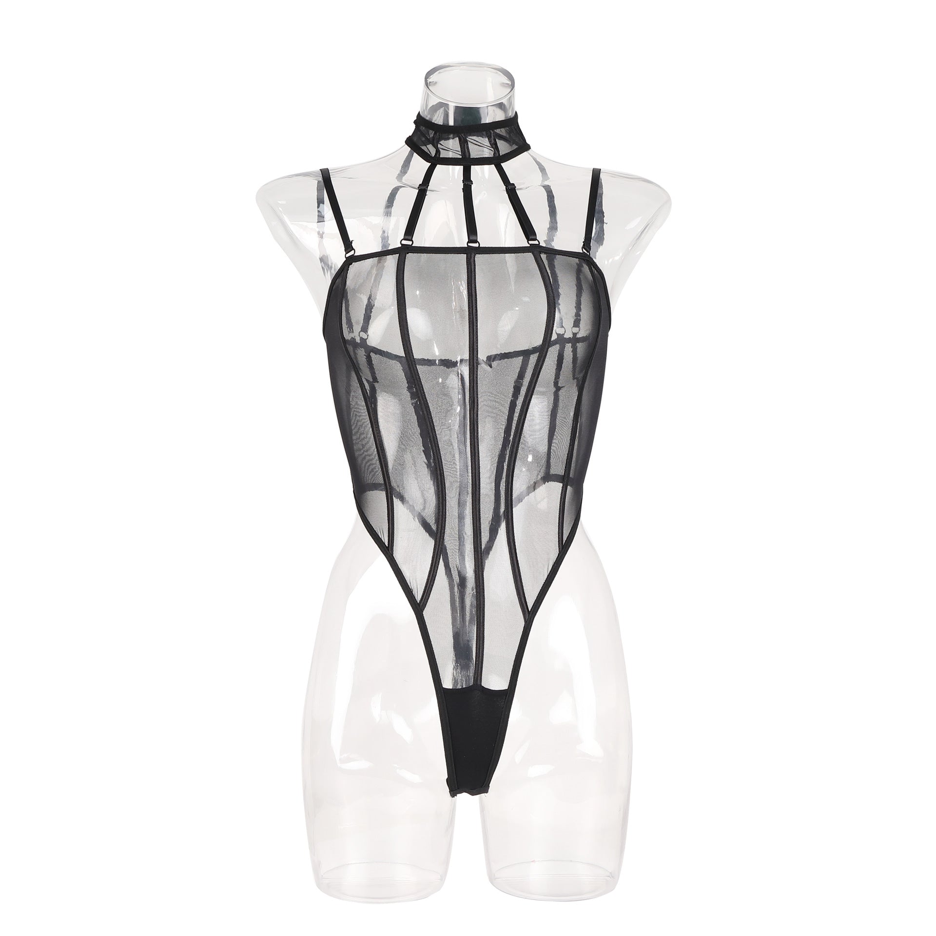 Underwear erotic netting wear jumpsuit see-through stitching