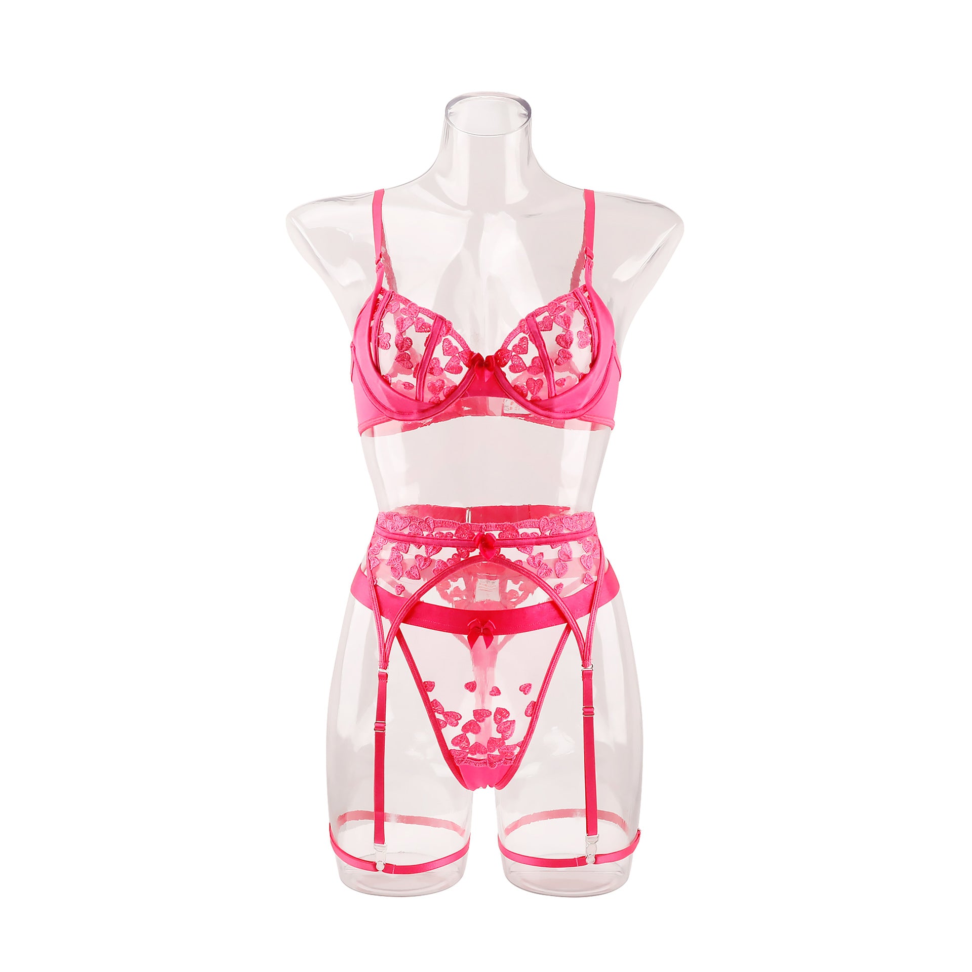 Underwear ultra-thin embroidery love mesh bra big chest small sexy lingerie set